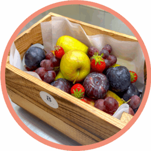 mehr Infos zum ProduktVeganObstkisterl pro Person | 1Bunter Obstkorb mit Früchten der Saison Basket with mixed seasonal fruits
